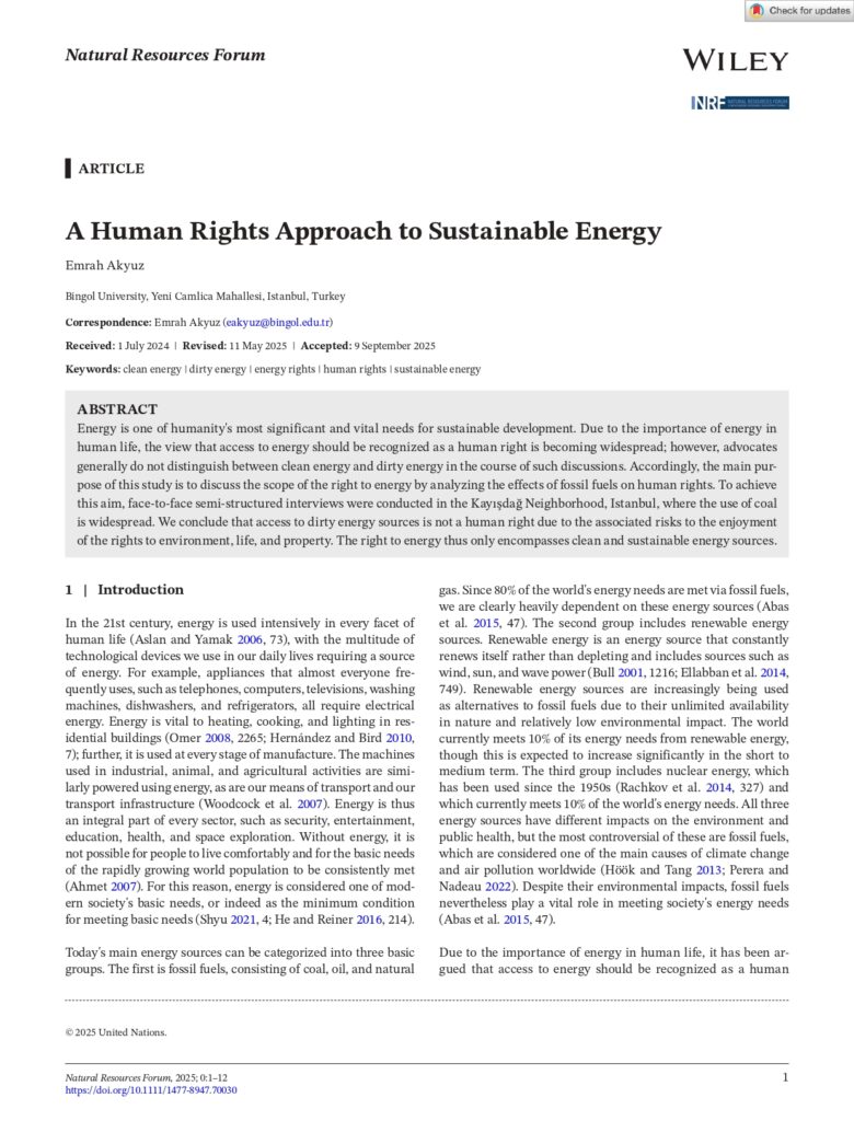 Thrilled to announce that my new paper “A Human Rights Approach to Sustainable Energy” has just been published in Natural Resources Forum (Wiley, UN-Sustainable Development Journal).